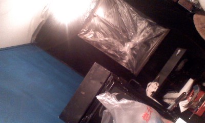 納戸を改造中につき、壁も青に塗りました~。